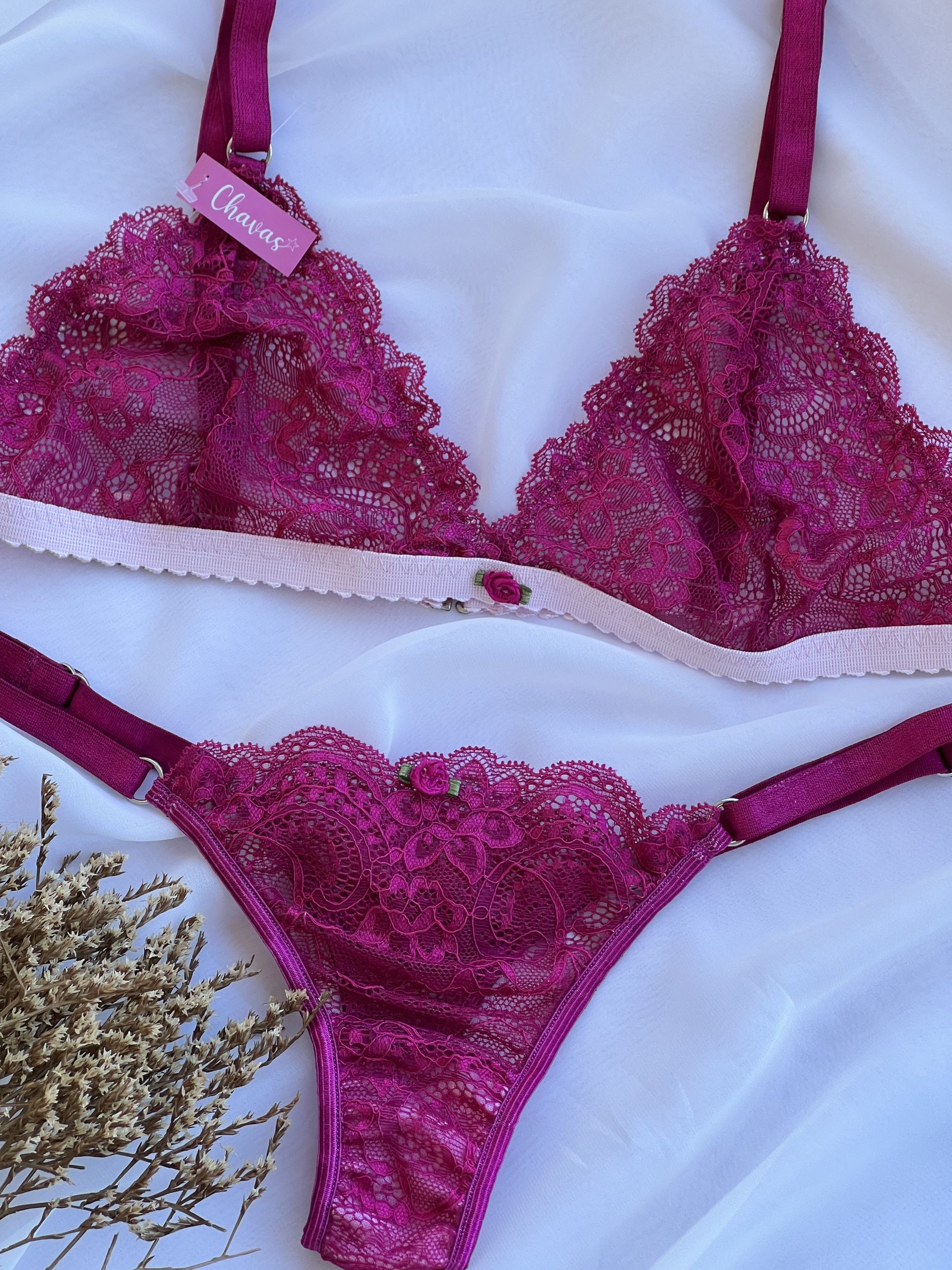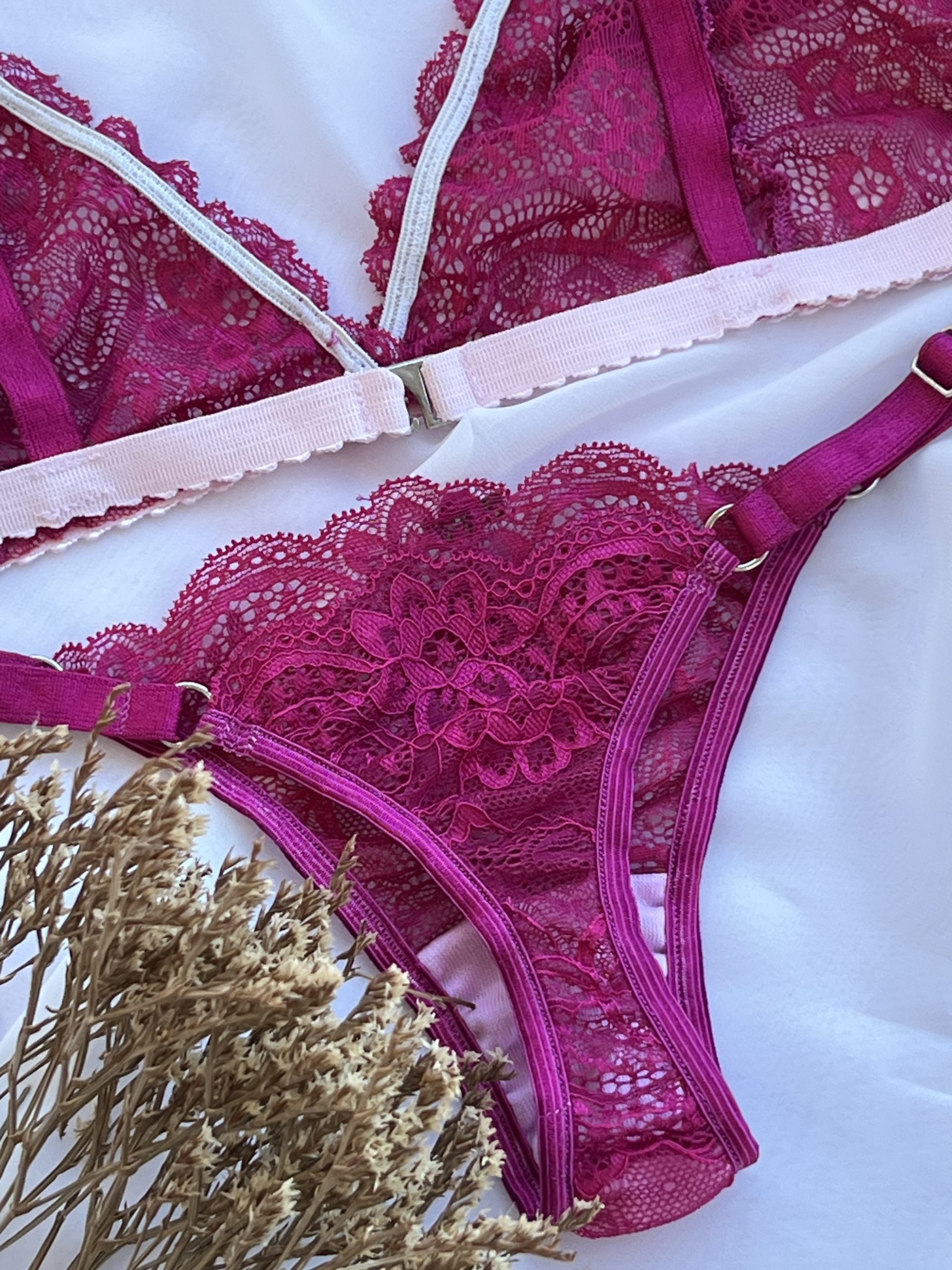 Conjunto en puntilla en color uva combinado con rosa