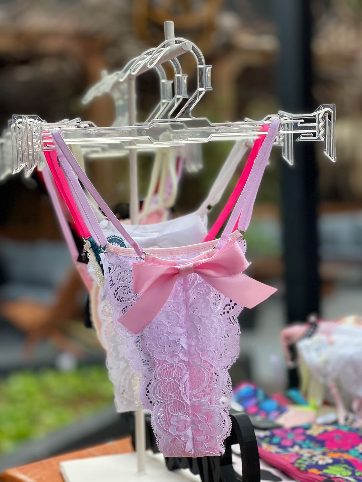 Less en puntilla, el moño es denmontable, la podes usar con o sin el moño