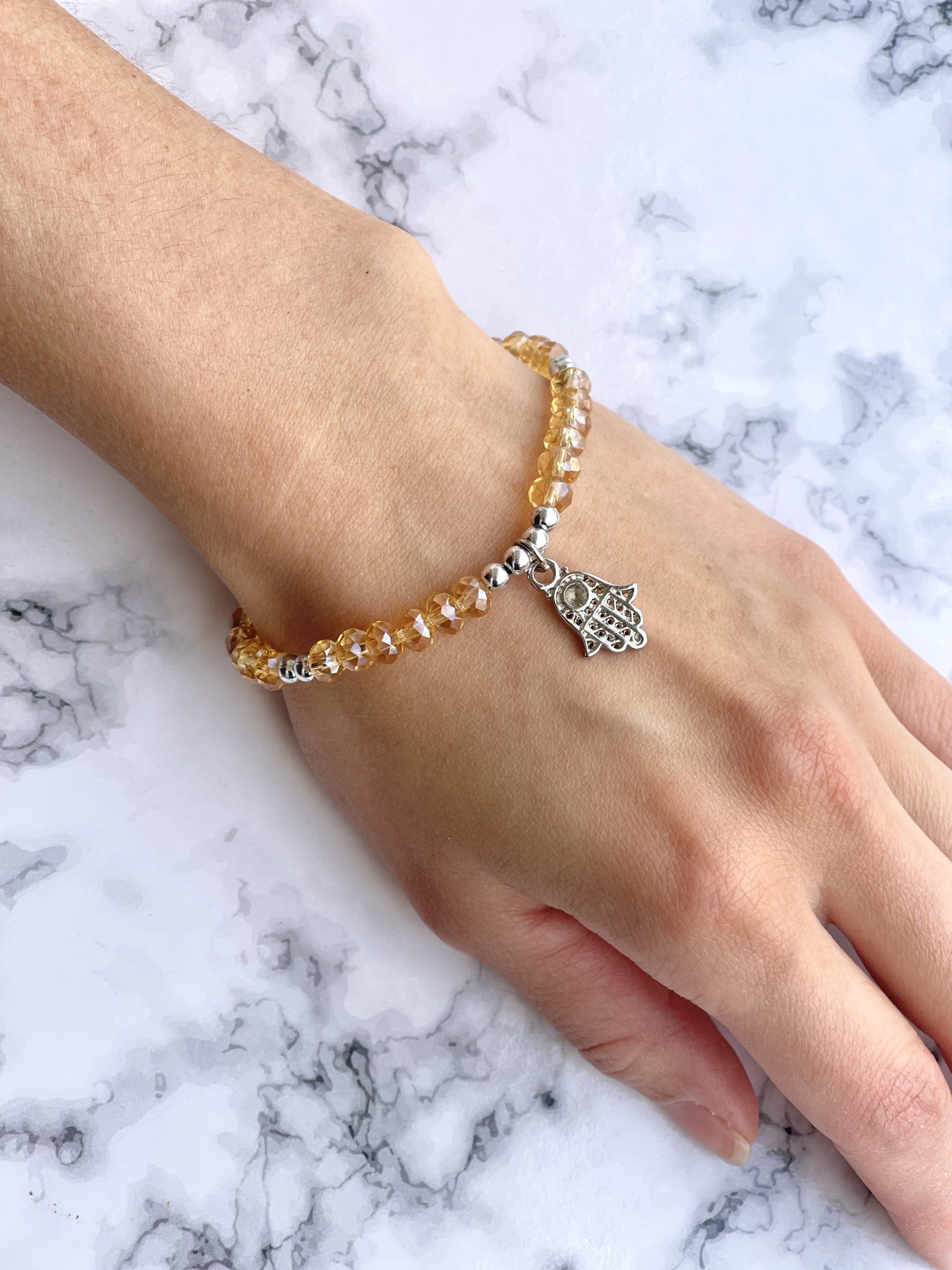 Pulsera cristal nude numero 6, dije mano fatima x1 unidad