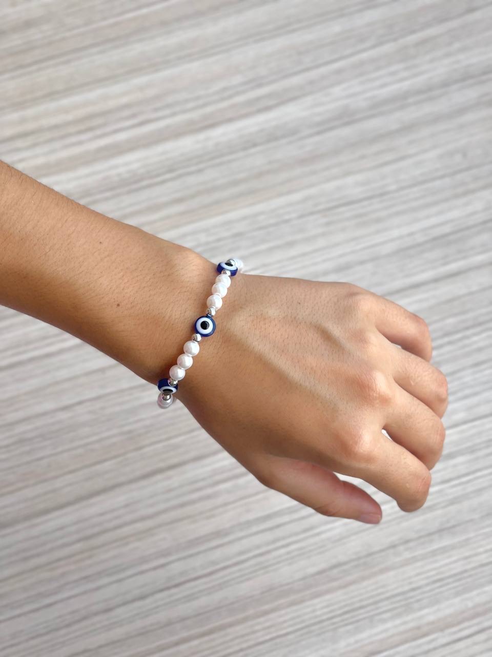 Pulsera para compartir perlas, ojo turco azul ( por un par )