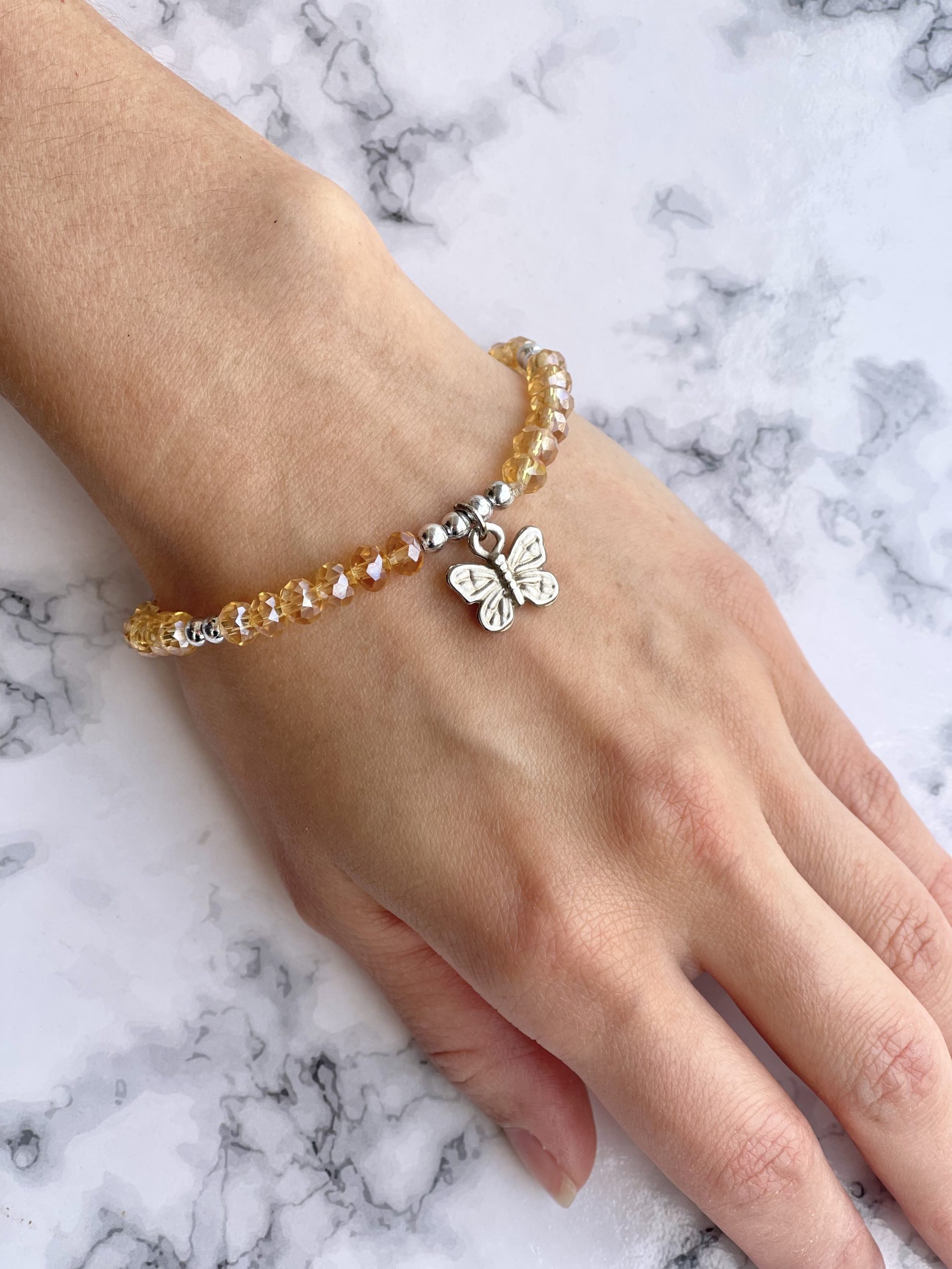 Pulsera cristal nude numero 6, dije mariposa x1 unidad